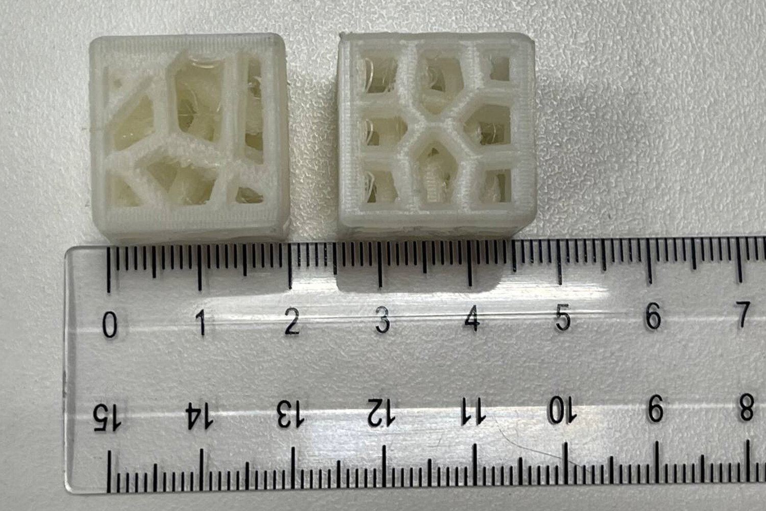 Команда ученых изготовила методом трехмерной печати образцы имплантатов из полилактида, используя три востребованные технологии: по принципу диаграмм Вороного, на основе BCC-решеток и с использованием гироидных структур. Конструкции первого типа повторяют природные соты, второго – точные кубические решетки, а третьего представляют плавные переплетения без острых граней.
