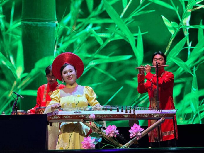 На сцене Екатерининского зала прозвучали знаковые произведения вьетнамской народной и современной музыки, исполненные на редких для России инструментах. Восторг и живой интерес вызвали такие инструменты, как данньи, бамбуковая флейта и дантрунг. Особую атмосферу вечера создали звуки клонгпута — необычного инструмента из бамбуковых труб, где мелодия рождается от хлопков по ладоням, и данбау — монострунного инструмента с удивительно глубоким звучанием.