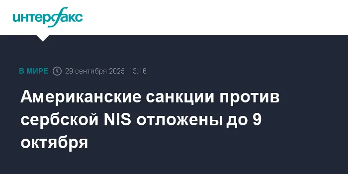 США приняли решение вновь отложить введение санкций в отношении ведущей сербской энергетической компании NIS, в которую входит и российский нефтяной гигант "Газпром нефть". Новая дата отсрочки назначена на 9 октября, что дает дополнительное время для поиска компромиссных решений и поддержания стабильности на энергетическом рынке региона.