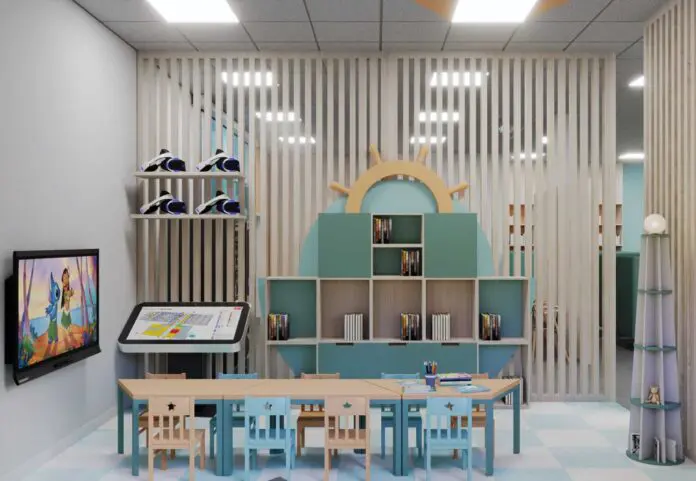 Пространство преобразится! Появится современная интерактивная зона для детей с планшетами, сенсорным столом и очками виртуальной реальности. Оборудуют мини-кинозал для фильмов и лекций. Отдельная площадка объединит клубы по интересам: «Рукодельница», «Юный художник», садоводческий «Сеятель», а также секции шашек и шахмат и библиопродлёнку.