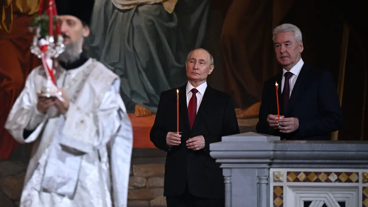 Президент России Владимир Путин и мэр Москвы Сергей Собянин присутствовали на пасхальной службе в храме Христа Спасителя. Богослужение возглавил Патриарх Московский и всея Руси Кирилл.